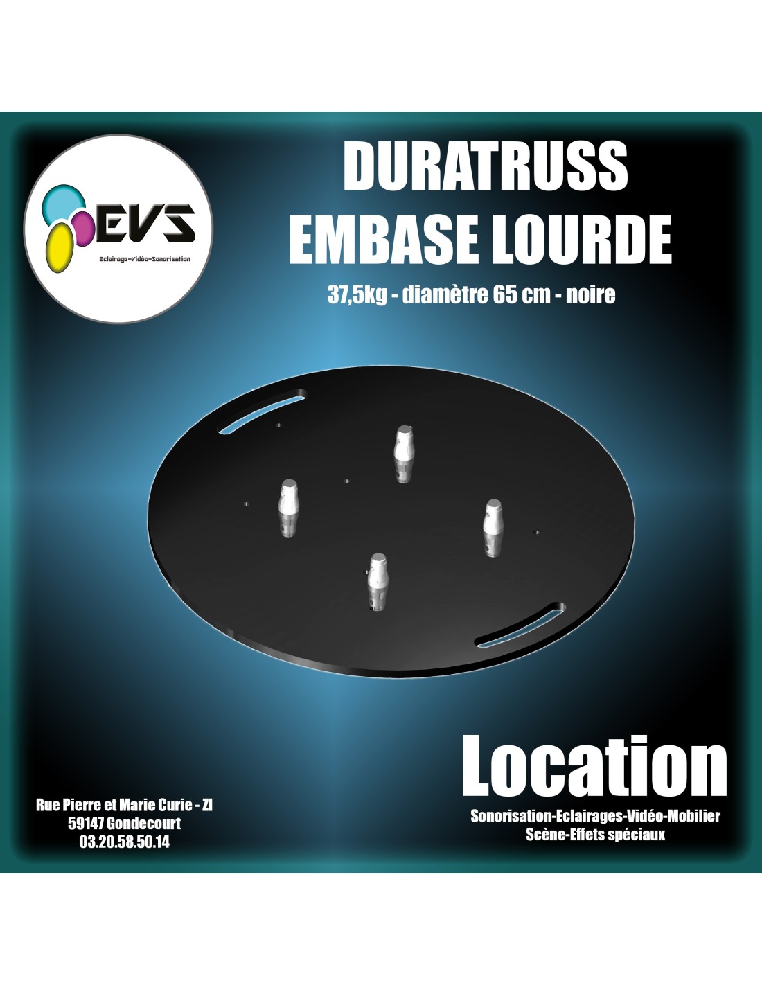 Embase lourde 37,5 kg/65cm noire