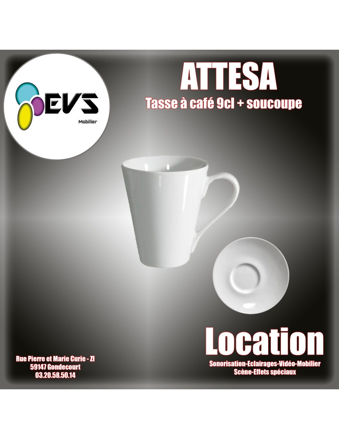 Tasse à café 9cl blanche + soucoupe diam 150 asymétrique