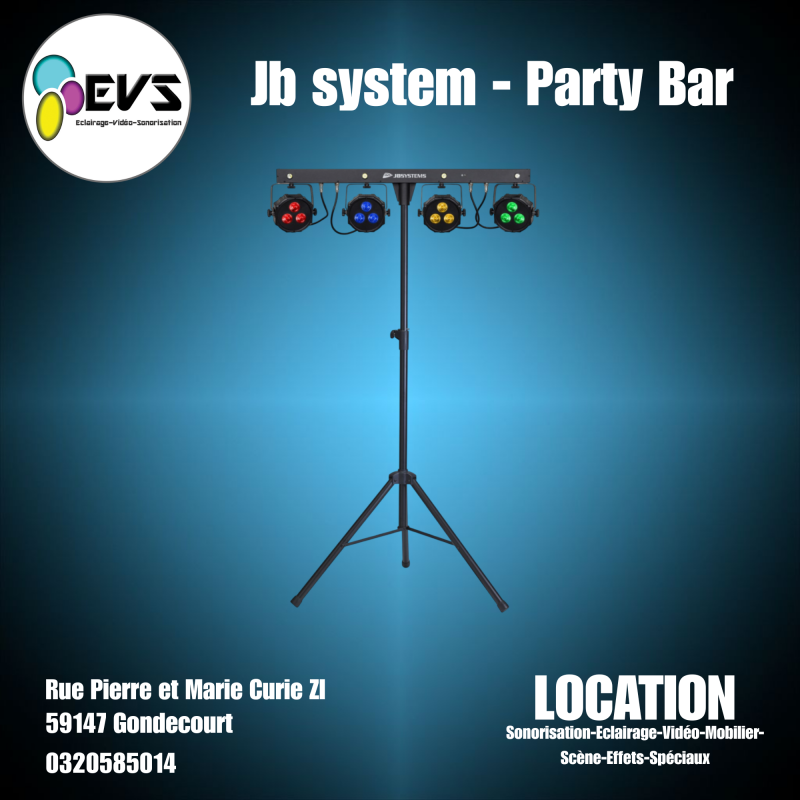 La Party Bar de JB System est une solution d’éclairage tout-en-un idéale pour animer vos soirées, mariages, anniversaires, concerts ou soirées d’entreprise. Facile à installer et à utiliser, elle offre un rendu lumineux dynamique et professionnel, parfait pour créer une véritable ambiance de fête.