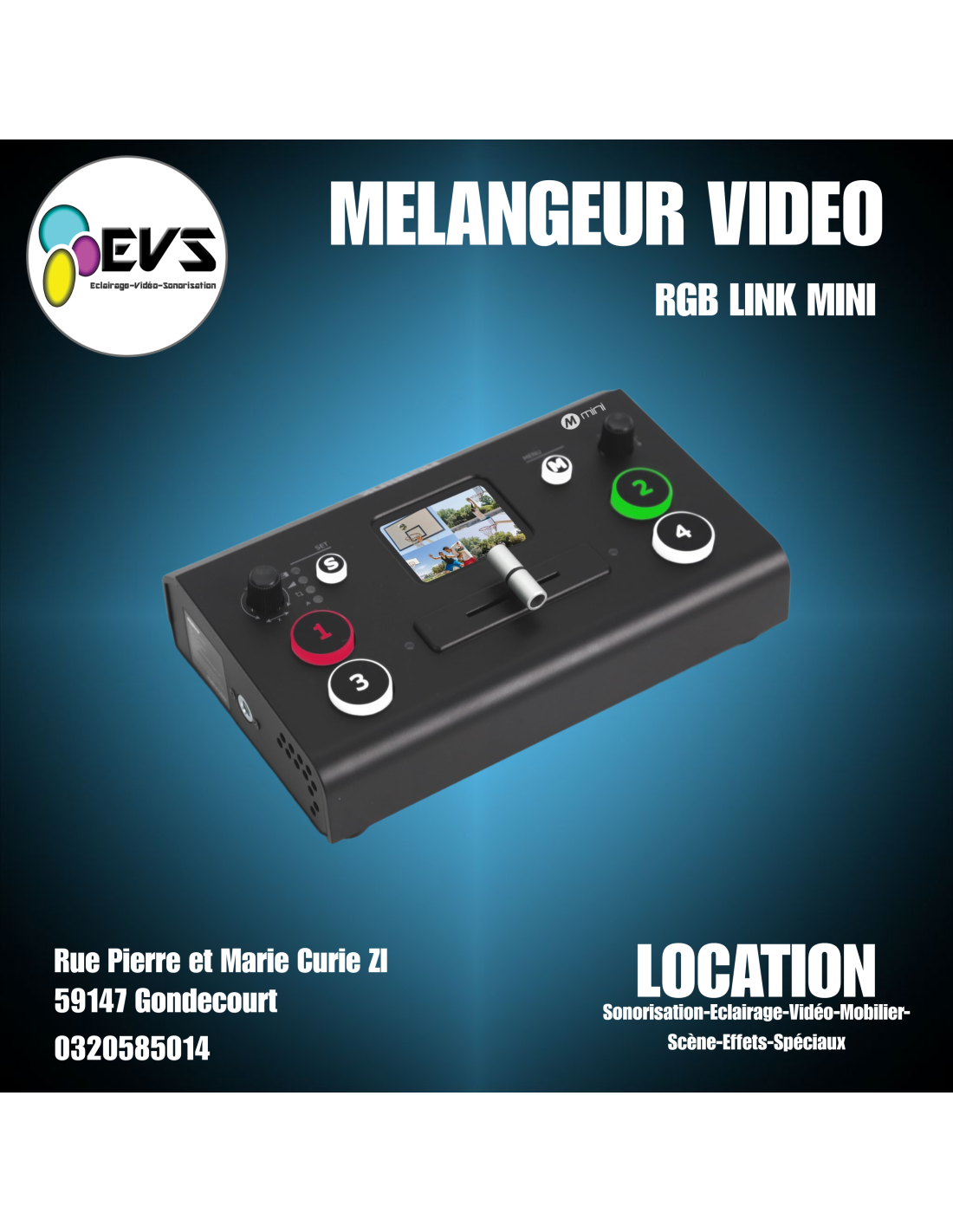Le RGB Link Mini est un mélangeur vidéo HDMI ultra-compact, conçu pour les captations, diffusions live, conférences, événements ou productions multi-caméras.