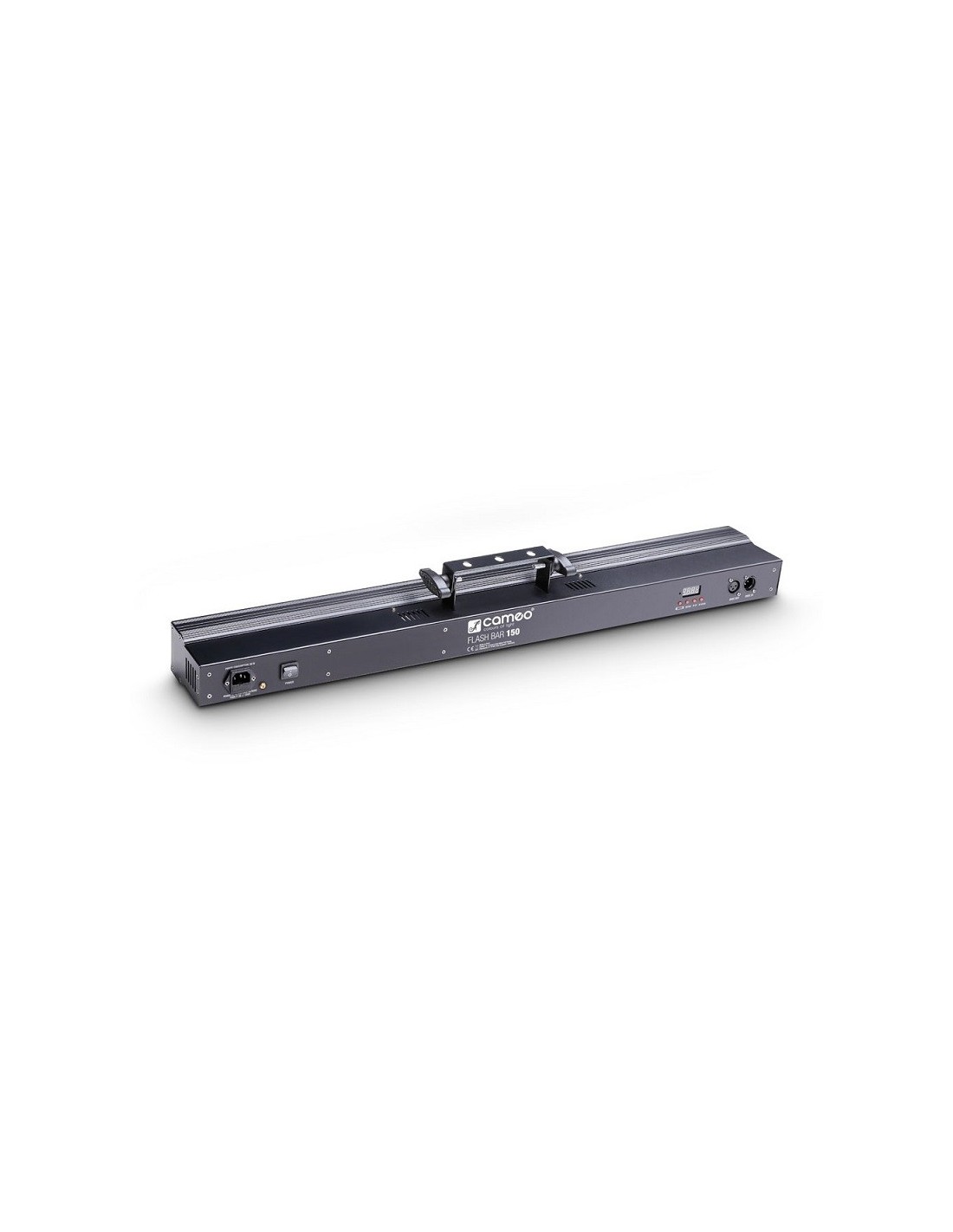 Le robuste boîtier métallique de finition noire possède une équerre de montage réglable et un ventilateur silencieux assure son refroidissement. La Flash Bar 150 est équipée d'embases DMX 3 points, d'une embase secteur au format IEC et s'utilise sous 110 à 240 volts. L'utilisation est facile et intuitive, grâce à un afficheur LED complété de 4 touches utilisateur.