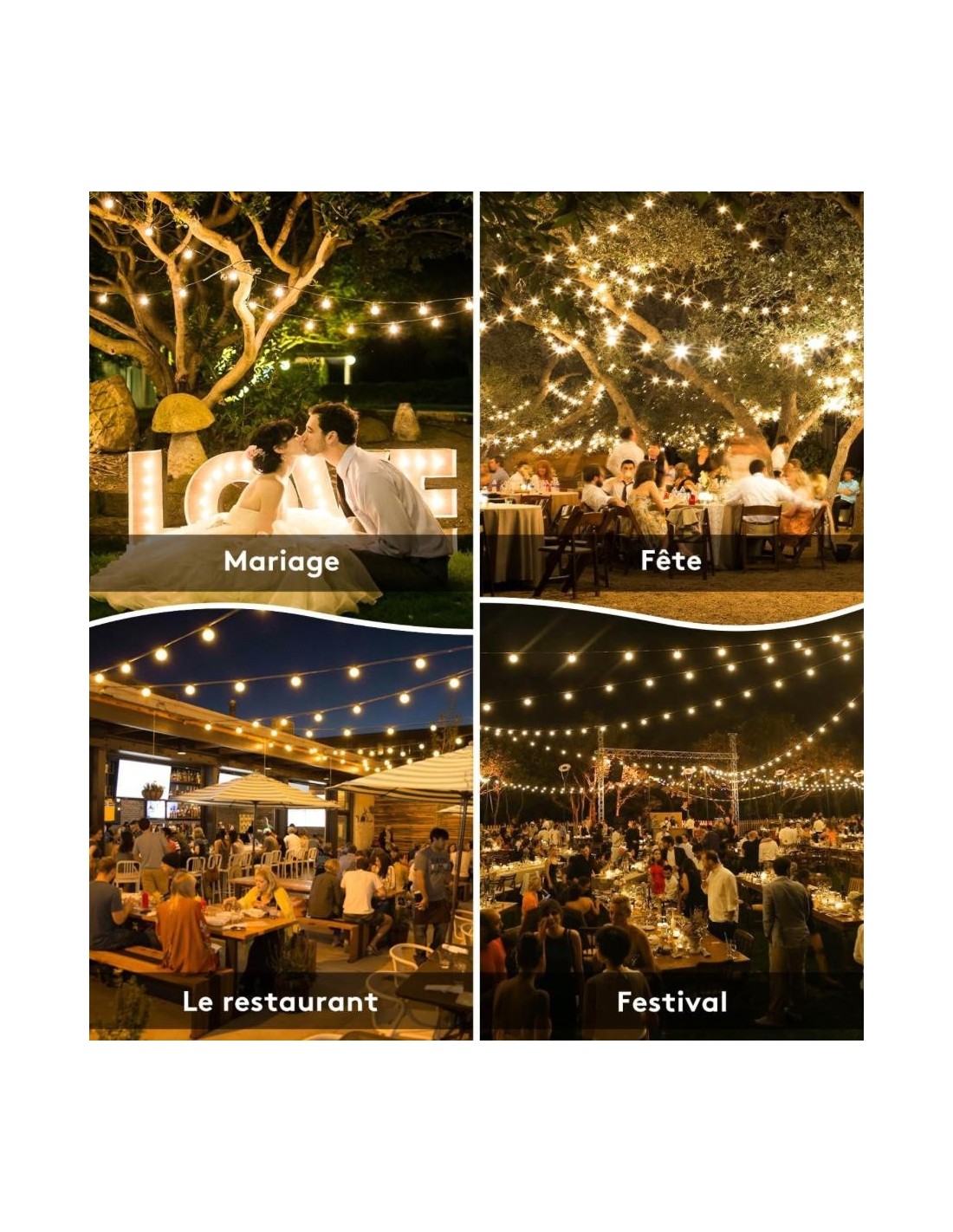 Apportez une touche chaleureuse et festive à vos événements en extérieur avec nos guirlandes lumineuses IP44. Idéales pour les soirées, mariages, terrasses, jardins ou réceptions, elles résistent parfaitement aux intempéries tout en offrant une lumière douce et élégante.