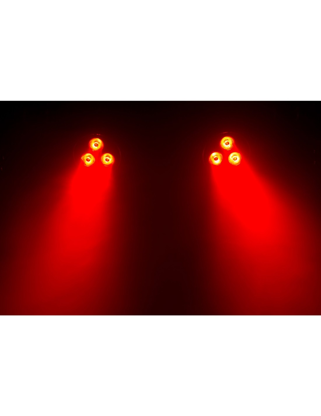 2 projecteurs LED, chacun doté de 3 LED RGB de 9 W pour créer de puissants faisceaux de 15°